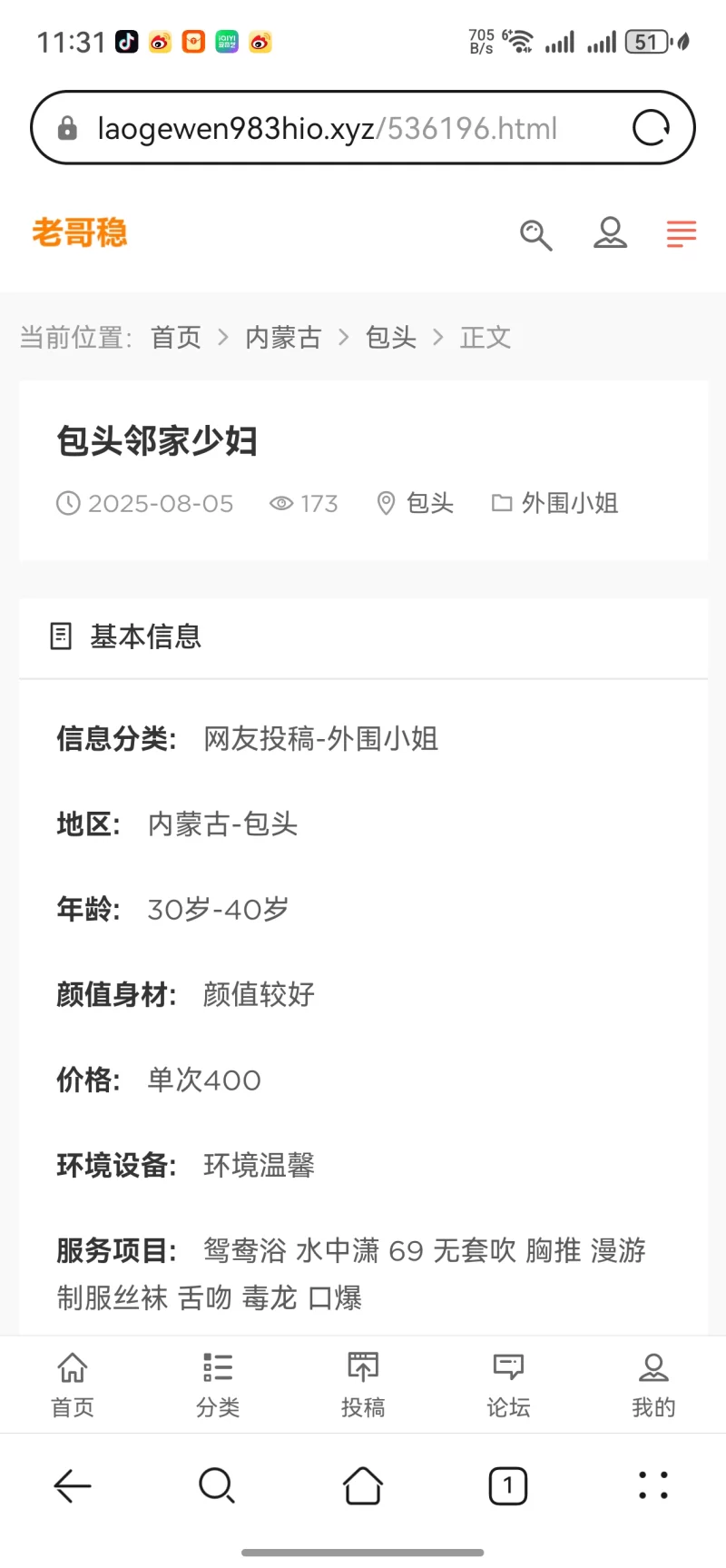 信息分类: 网友投稿-外围小姐