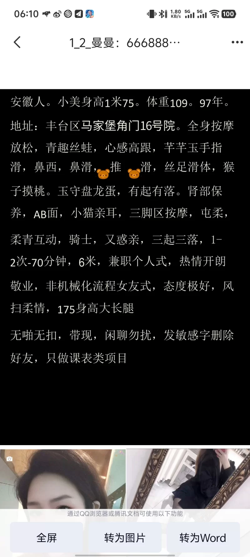 照片是本人 差距不大 身材好奶子很圆很舒服 口活销魂 脾气好不催人 去的早的话包夜 她后面就不接了可以玩的很爽